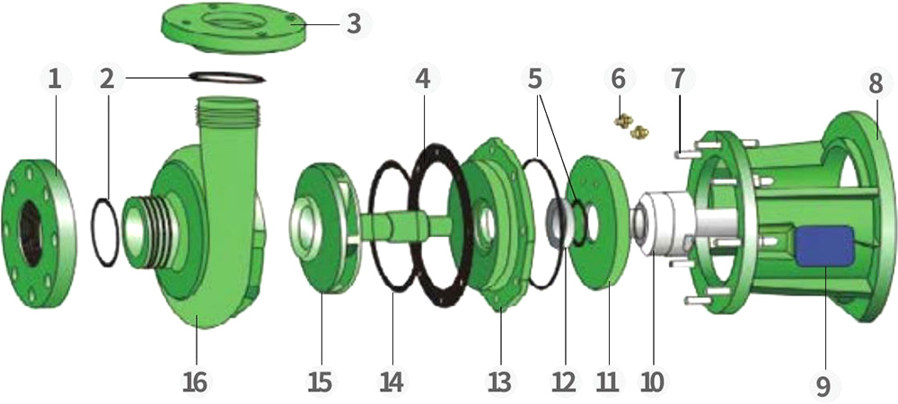 Nossa fábrica é especializada na fabricação de bombas centrífugas e autoescorvantes totalmente plásticas resistentes à corrosão em dois materiais - PVDF e FRPP - em quatro séries (FV, FP, FVZ, FPZ). As bombas PVDF são adequadas para lidar com ácidos fortes, oxidantes poderosos, halogênios, hidrocarbonetos aromáticos, compostos alifáticos e solventes clorados, com uma faixa de temperatura operacional de -40°C a 140°C. As bombas FRPP são ideais para álcalis fortes, bem como ácidos, bases, sais e seus derivados em geral, com uma faixa de temperatura operacional de -40°C a 90°C. As bombas são normalmente acionadas por motores do tipo Y com eficiência energética. Motores à prova de explosão podem ser fornecidos mediante solicitação.