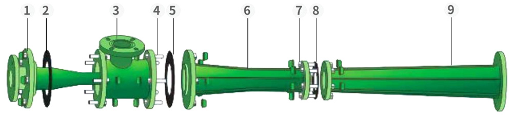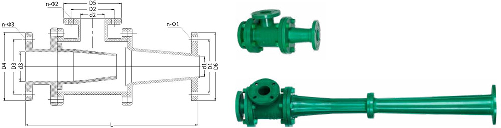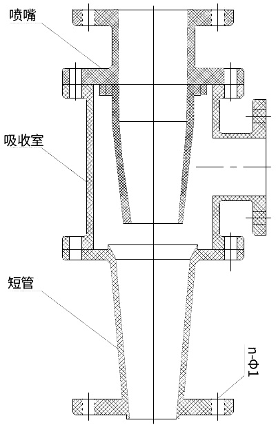 Desenho detalhado do conjunto da bomba de jato de conexão de série de água gaseificada