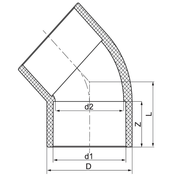 Cotovelo PVC-C 45° DN15-600 1/2"-24" Padrão ANSI