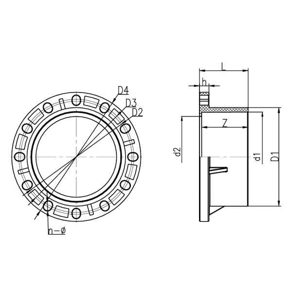 DN D1 D2 D3 D4 d1 d2 L h Z n-Ø Geral