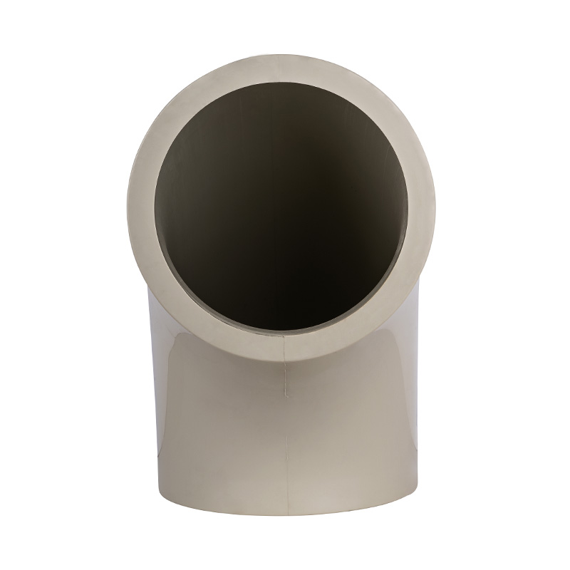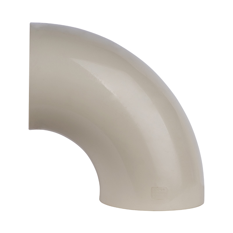 Acessórios para tubos de plástico de pressão de trabalho de 1,0-1,6 Mpa amarelo-terra de alta qualidade PVC-C 90 ° em formato de cotovelo DN15-DN400 para indústria química e de água