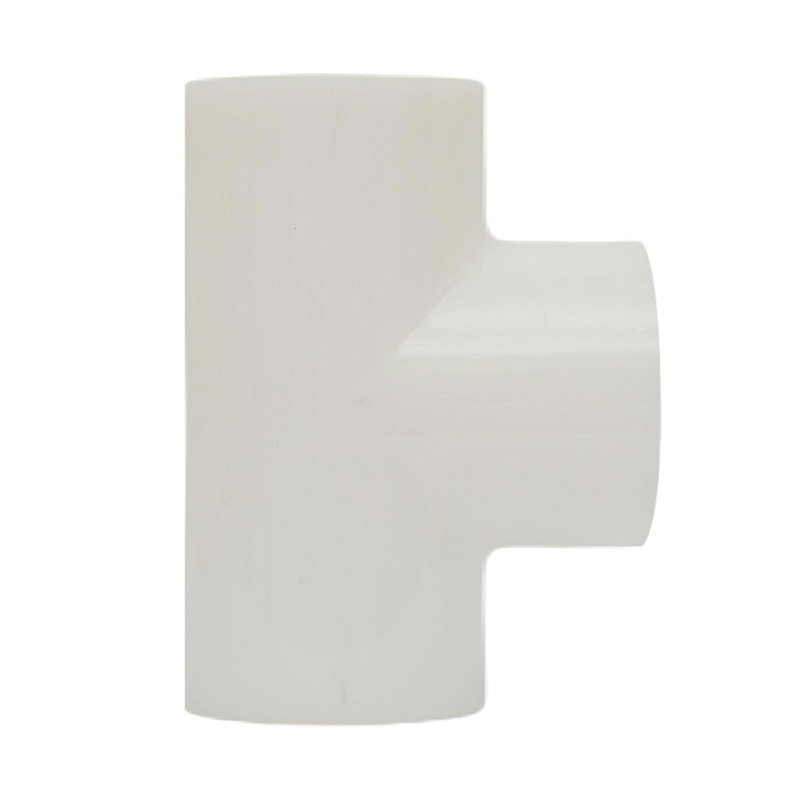 Preço de fábrica Branco PVDF Butt-Weld Tee Encaixe de tubo de plástico de formato igual. Encaixe para tubulação de água DN15-DN100. Encaixe em T reto para drenagem e saneamento.