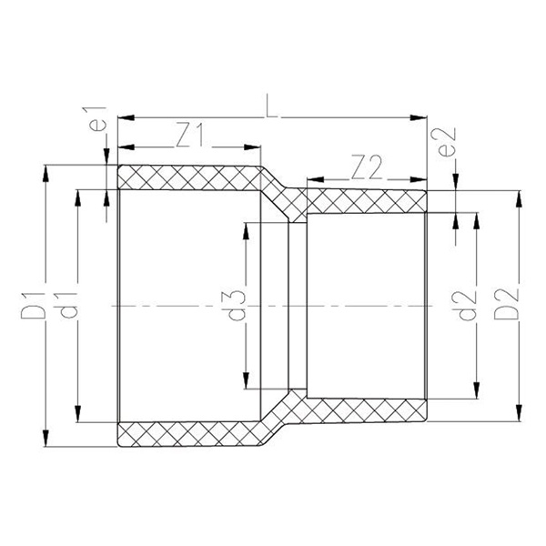 | DN | D1 | D2 | d1 | d2 | d3 | L | Z1 | Z2 | e1 | e2 | ||||||||||||||||||||||