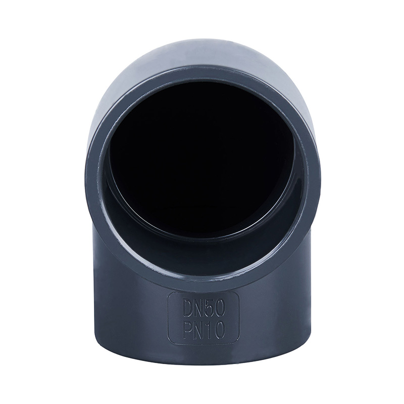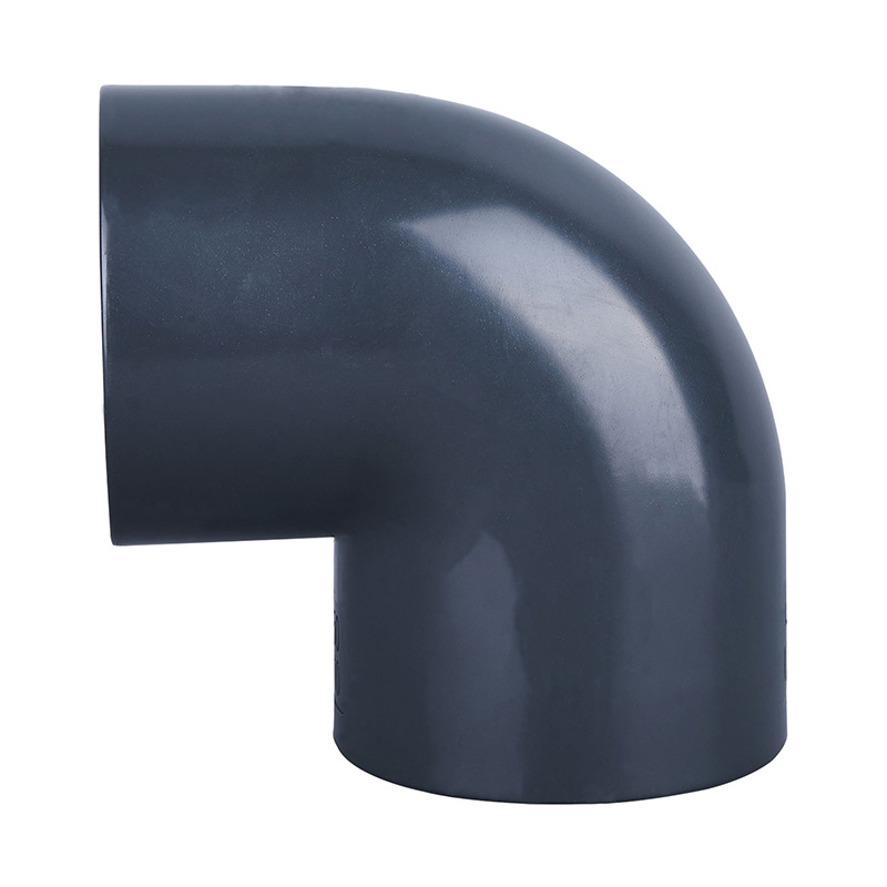 Acessórios para tubos de plástico com pressão de trabalho de 1,0-1,6 MPa em formato de cotovelo de PVC-U cinza escuro de alta qualidade 90 ° DN15-DN600 para as indústrias química e de água.