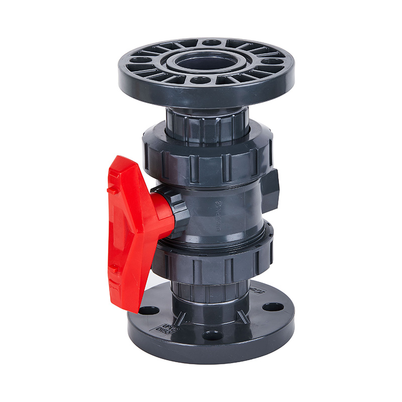Preço competitivo ultra-durável nova válvula de esfera de soquete de união dupla com flange de PVC-U cinza escuro para indústria química e de água Tubos PE Padrão ANSI