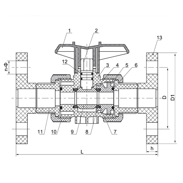 1.A válvula de esfera de união dupla possui assentos de PTFE com estanqueidade ajustável.