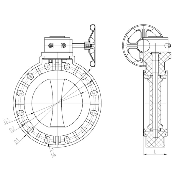 Desenho detalhado do conjunto da válvula borboleta tipo engrenagem helicoidal