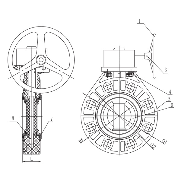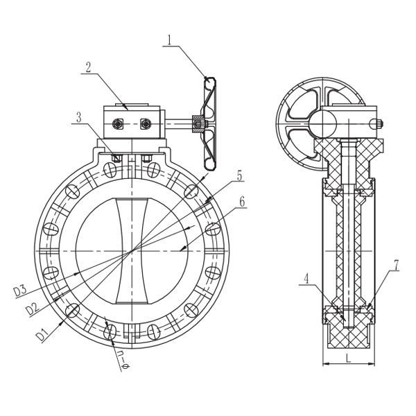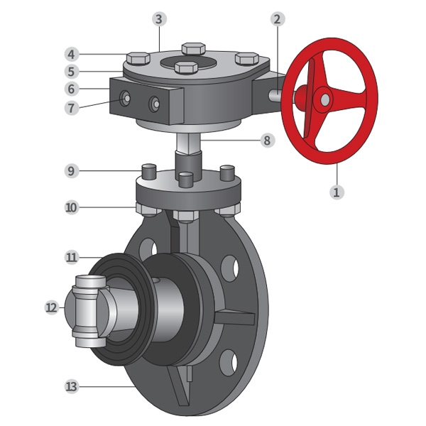 Desenho detalhado do conjunto da válvula borboleta tipo engrenagem helicoidal