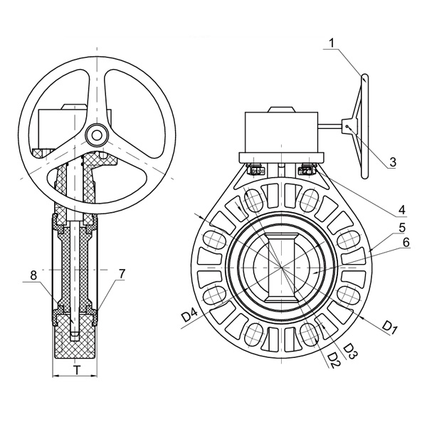 Válvula borboleta de engrenagem helicoidal PPH, centro manual selado, vedação macia DN40-1000, válvula de alça de alavanca de plástico industrial e residencial, padrão ANSI