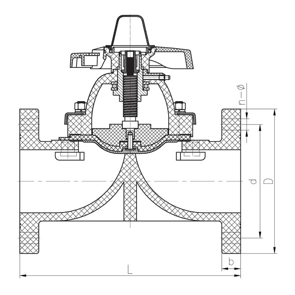Desenho detalhado do conjunto da válvula de diafragma
