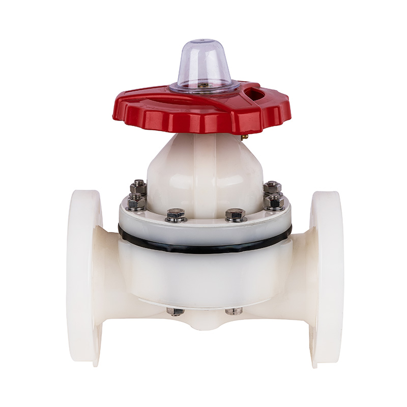 Nova válvula de diafragma flangeada PVDF de alta qualidade, branca, pressão média, certificação ISO9001 para indústria química, padrão ANSI
