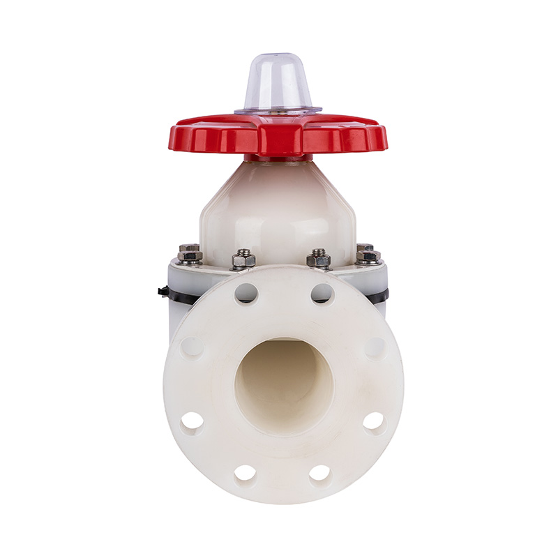 Nova válvula de diafragma de 1 via com extremidade flangeada PVDF de alta qualidade para a indústria química, branca, pressão média, padrão ANSI