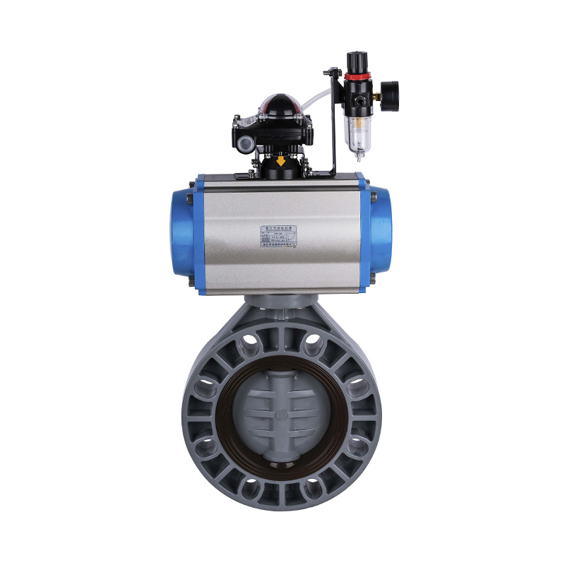 Válvula borboleta acionada pneumática PVC-C, vedação central com vedação macia DN32-1000, válvula borboleta de plástico industrial e residencial padrão ANSI