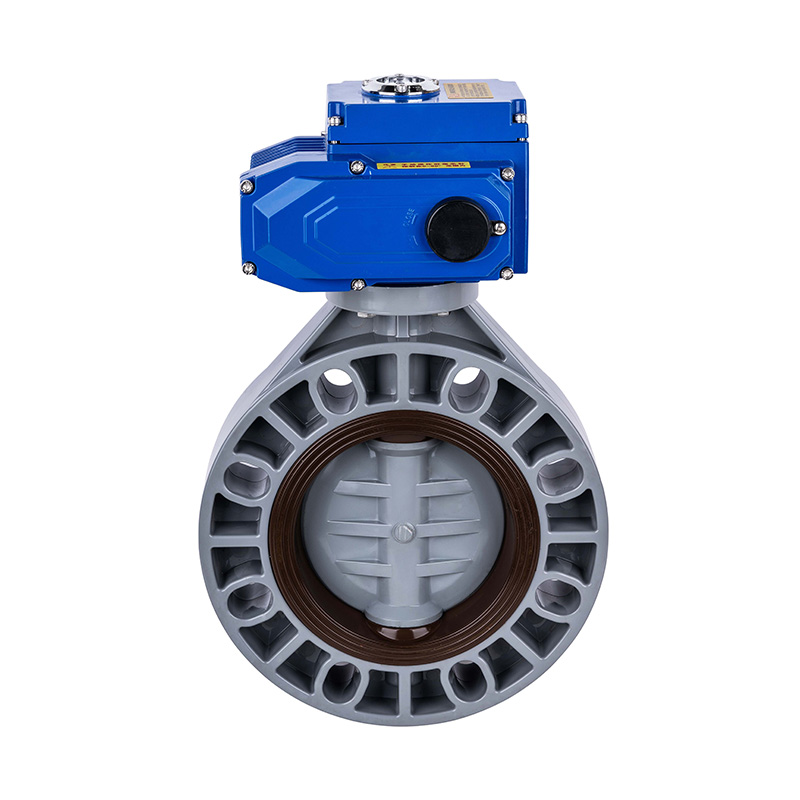 Válvula borboleta acionada elétrica PVC-C, vedação central com vedação macia DN32-1000, válvula borboleta de plástico industrial e residencial padrão ANSI