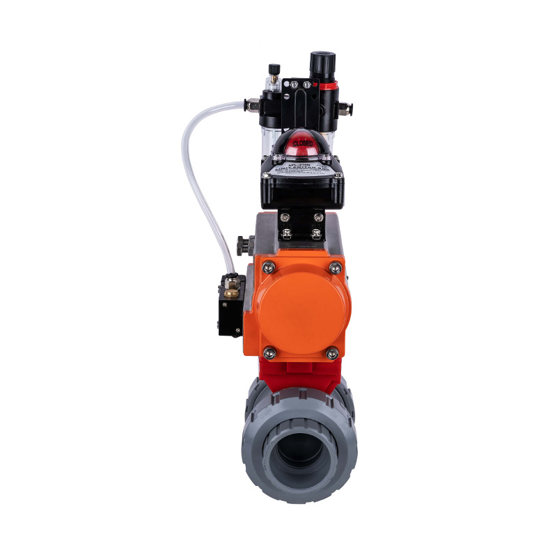 Válvula de esfera de soquete pneumático ultradurável de excelente qualidade, válvula de esfera pneumática de plástico de alta temperatura, adequada para o padrão ANSI da indústria química