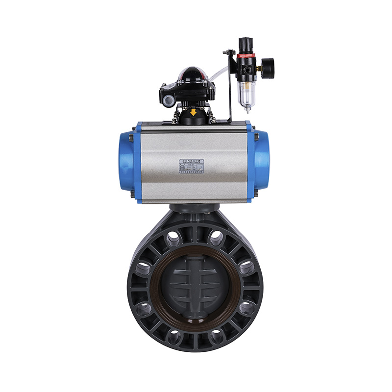 Válvula borboleta automática pneumática PVC-U, vedação macia de vedação central, DN40-1000, válvula de plástico industrial e doméstico, padrão JIS