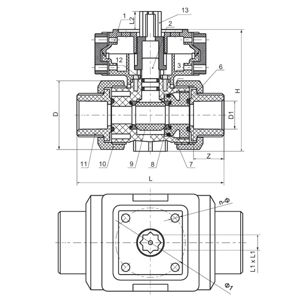 Especificação D(mm) D1(mm) L(mm) Z(mm) H(mm) Φ1(mm) L1XL1(mm) L2(mm) n-Φ1(mm)
