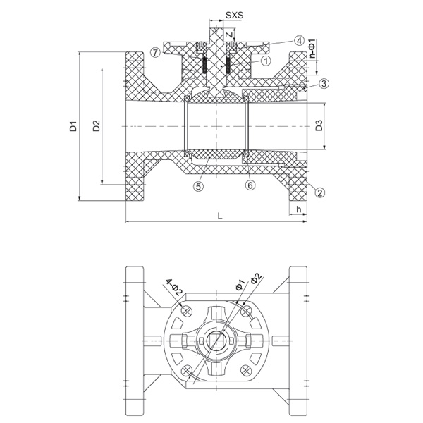 Especificação D1(mm) D2(mm) D3(mm) L(mm) h(mm) n-Φ1(mm) Φ1(mm) Φ2(mm) SXS(mm) 4-Φ2(mm) Z(mm)