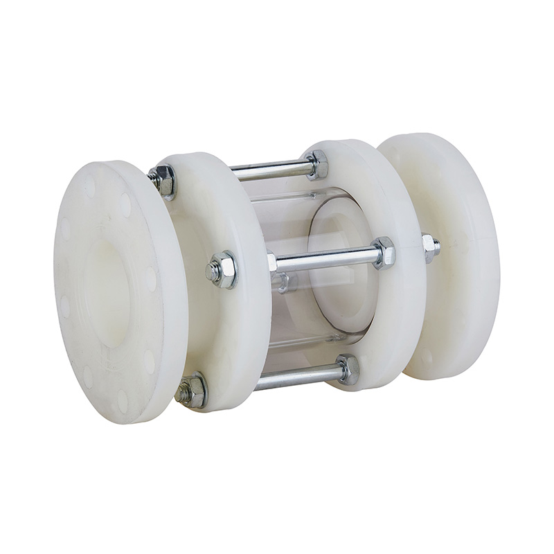 Indicador de nível líquido em espiral de plástico de alta temperatura com vidro de visão PVDF branco resistente ao calor Padrão ANSI